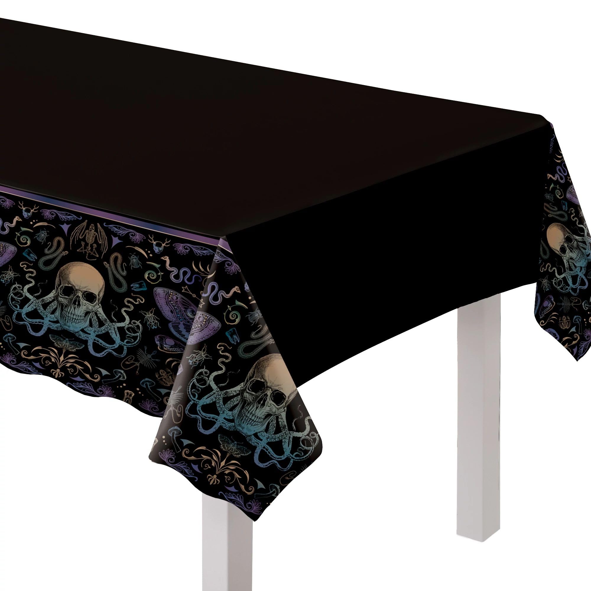 Elevate your next event with our black dark Academia rectangular plastic table cover. Perfectly sized at 54" x 102", this elegant tablecloth is ideal for various table settings, adding a touch of Gothic sophistication to any celebration. Crafted from high-quality plastic, this durable cover is not only stylish but also practical, protecting your surfaces from spills, stains, and scratches. Designed with the dark academia aesthetic in mind, it's perfect for themed parties, academic gatherings, Halloween events, or any occasion seeking a mysterious and scholarly atmosphere. Whether you’re hosting an intimate dinner or a grand soiree, this table cover ensures your decor remains effortlessly elegant throughout the event. Order now and bring a refined, Gothic charm to your table setting.