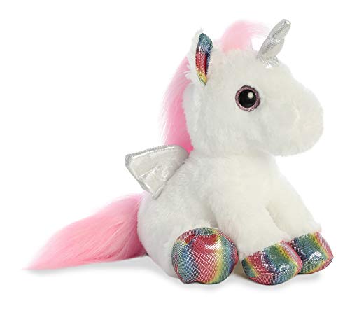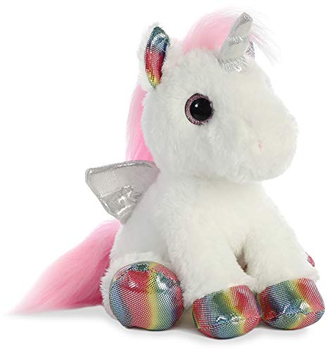Bring the fantasy realm to life with the Aurora - Medium White Sparkle Tales - Astra Unicorn, a plush, enchanting stuffed animal that glows with magic and wonder. Adorned with a soft white and pink design, Astra stands at a powerful 12 inches and flaunts sparkling eyes that will captivate any fantasy creature aficionado. Touched with a radiant silver horn, wings, and hooves, this whimsical unicorn brings the most enchanting stories of Sparkle Tales to life, right in your own home.