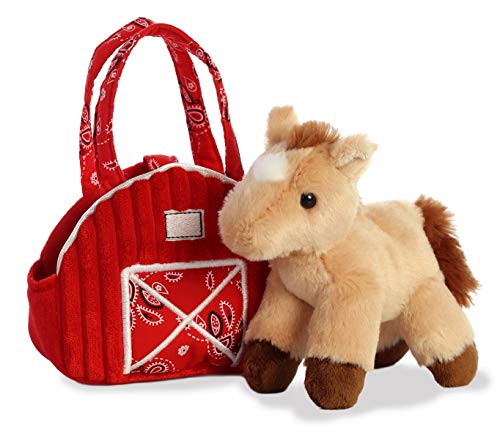 Step up your little one's fashion game with our Aurora Fancy Pals - Small Red Barn Horse. This eye-catching accessory doubles as a lovable playmate with a sweet little pony nestled within. The carefully designed red barn bag adds to its charm. This stuffed animal makes the perfect companion for any adventure. Lightweight and adorable, it's perfect for carrying anywhere. From car rides to play dates, this 7-inch horse will be a big hit!