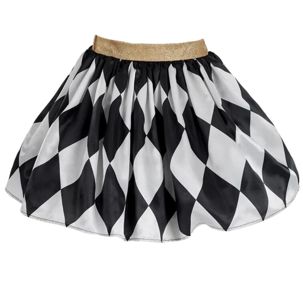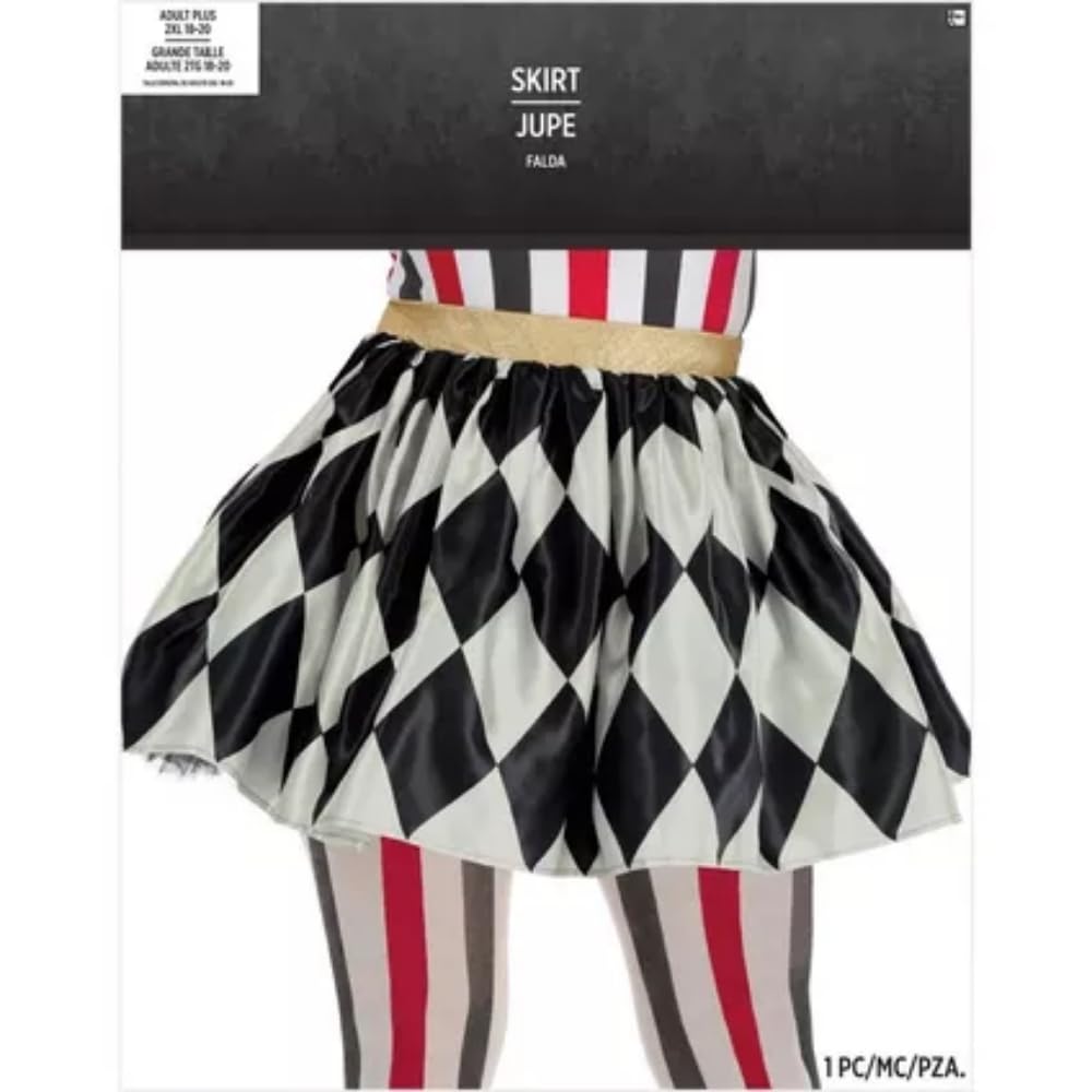 Elevate your costume game with our women's black & white vintage circus skirt, designed to offer both style and comfort. This skirt features a distinctive harlequin design with alternating black and white patches that exude a classic vintage circus vibe. The golden waistband shimmer adds an elegant touch, making the skirt not only visually appealing but also a standout piece for any themed event. Crafted in a versatile plus xx-large size, this skirt ensures a comfortable fit for various body types. Whether you're dressing up for Halloween, participating in cosplay, or attending a themed party, this skirt promises to be a perfect addition to your wardrobe. The pack of 3 ensures you have multiple options for different events, or perhaps to share with friends. Made from high-quality materials, this skirt is durable and designed for repeated use, ensuring you get the most out of your purchase. Don't miss out on this unique and stunning vintage circus skirt that will surely make you the center of attention. Pair it with a crop top or corset for a complete vintage circus look, or mix and match with other costume pieces to create your own unique style. The possibilities are endless! Add this women's black & white vintage circus skirt to your collection and get ready to steal the show at your next event.