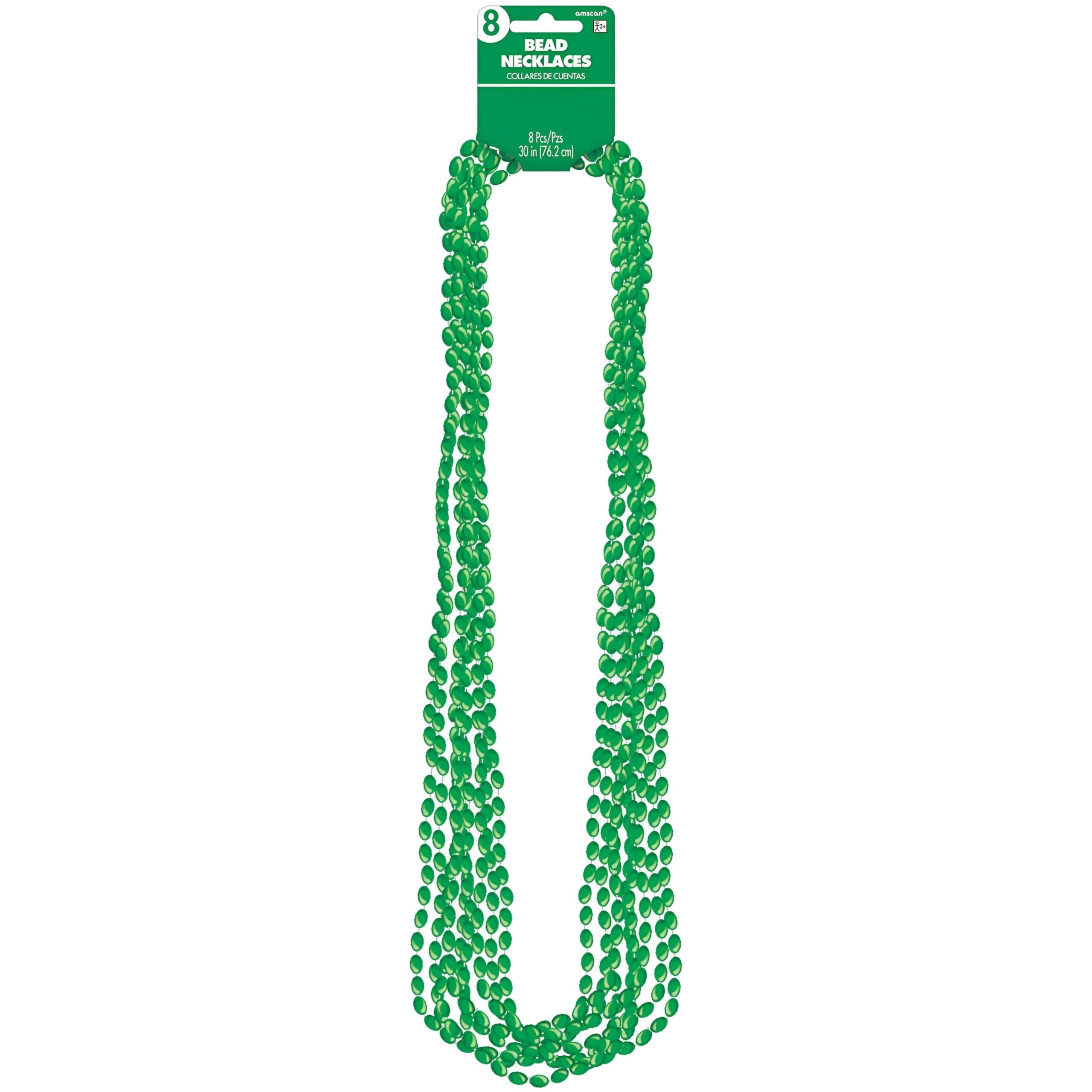 30" Green Metallic Bead Necklaces (Pack of 8) from Amscan adds an easy finishing touch to your party decor.