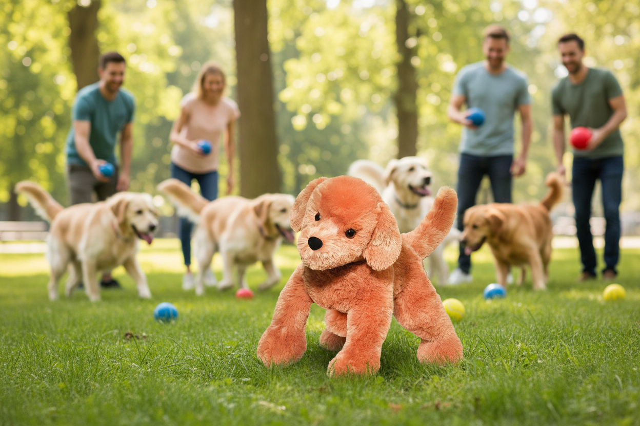 Paws Golden the Labrador is ready for adventures and extra snuggles. Paws Golden is a 27 inch labrador who loves make-believe adventures, cozy naps, and big hugs. Thoughtful shaping and markings inspired by the real animal. With an irresistibly soft coat and an expressive face, Paws Golden quickly becomes a constant companion for story time, car rides, and quiet moments.