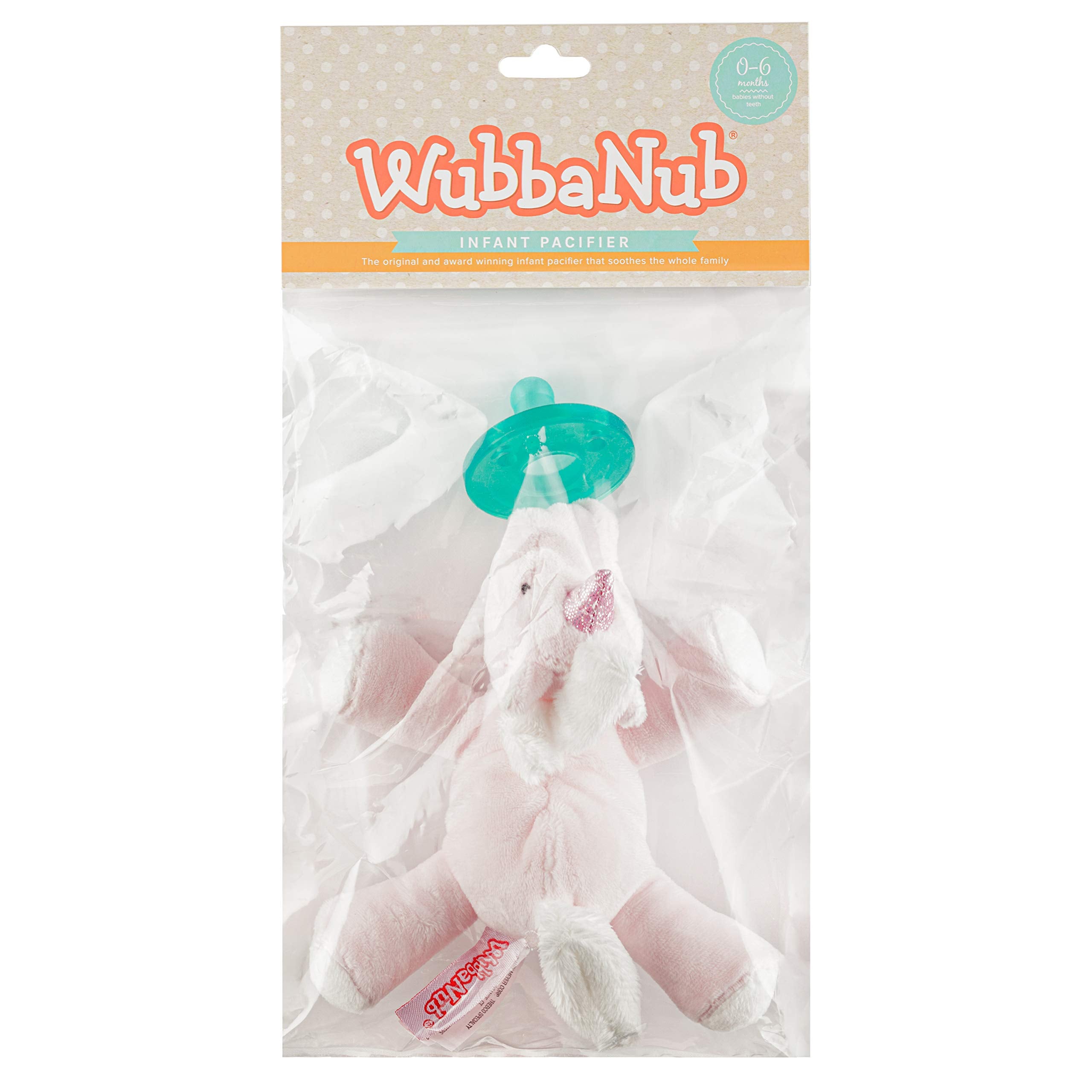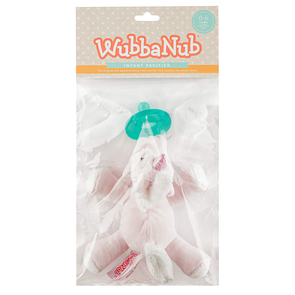 - Soft plush unicorn attached to a hospital‑trusted silicone pacifier Easy for tiny hands to hold and self‑soothe BPA, PVC & phthalate free materials Machine washable; travel‑friendly size Thoughtful newborn & baby shower gift Details: WubbaNub Brand- The Original Pacifier/Plush Animal combination Durable one piece construction is both functional and stylish.